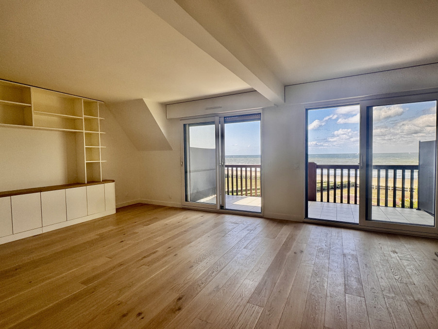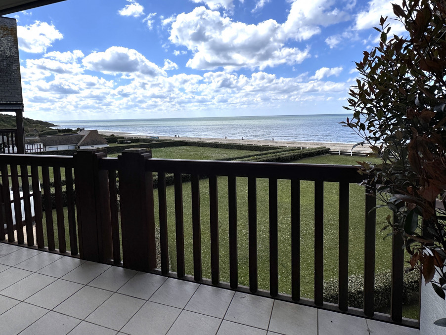 Bénerville sur Mer, plage des Ammonites. Appartement Unique sur le front de mer, 102 M2 loi Carrez - 115M2 au sol et 18 M2 de terrasses. Situation exceptionnelle Résidence ROYAL CUP, accès direct à la plage!