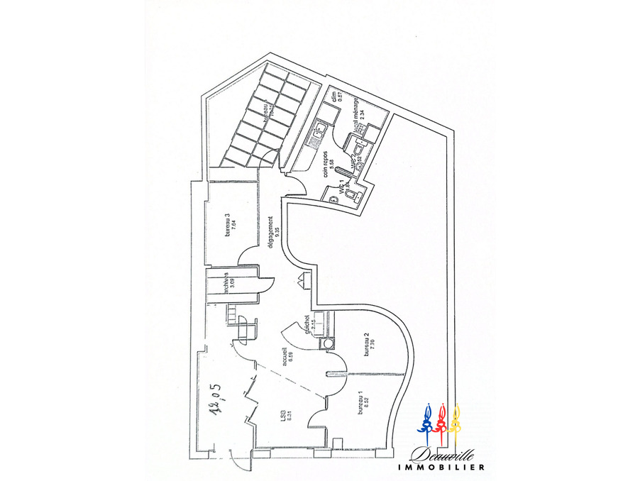 Situés en plein coeur de Deauville, quartier mairie, LOCAUX PROFESSIONNELS de 95M2 en Rez-de-chaussée offrant une excellente visibilité de 7 mètres linéaires. Agencement actuel : Hall d'accueil clientèle, quatre bureaux, grand bureau de direction sous verrière, local archive, deux WC, local technique. Climatisation. Locaux sécurisés : Porte d'entrée automatisée, rideau de fer. Situation idéale pour Professions libérales, bureaux, ou commerces sans nuisances pour la copropriété. Plans et dossier complet sur demande. Contact : Romane ROCCI - 0632416162 - Deauville Immobilier.