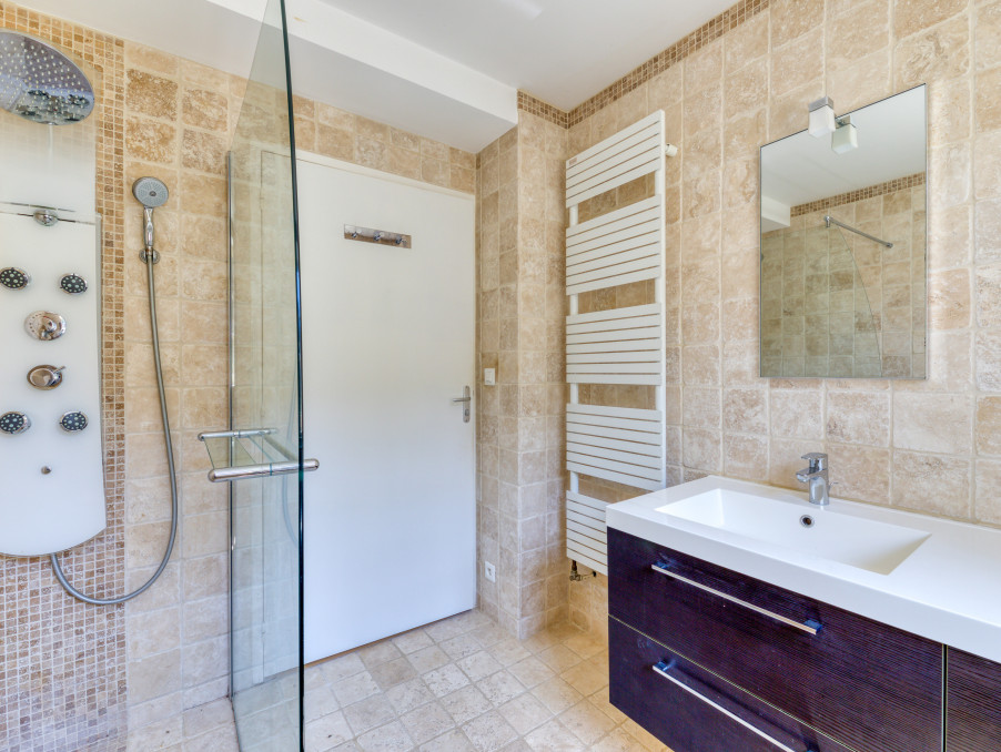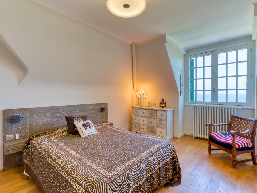 Séjour avec cheminée, Salle à manger, Terrasse pleine vue Mer, Cuisine, Entrée avec vestiaire et WC invités, Suite parentale en Rez de chaussée avec salle de douche et WC, Dressing. à l'étage : Quatre chambres, Salle de bain, salle de douche , 2 cabinets de toilettes, WC, grand palier. Surface totale 260M2 au sol - Terrasse 54M2 - laverie, chaufferie- Travaux à prévoir.
