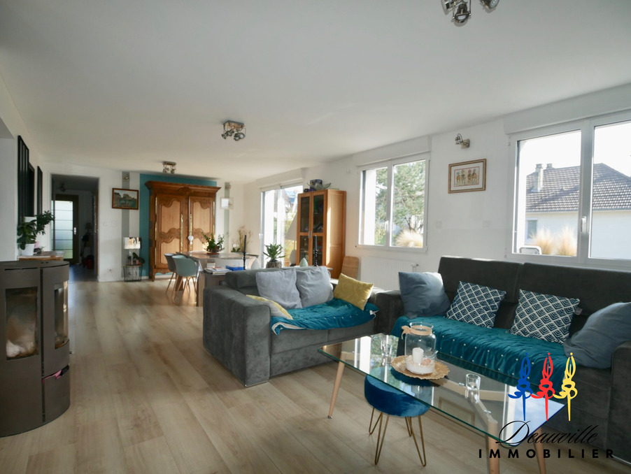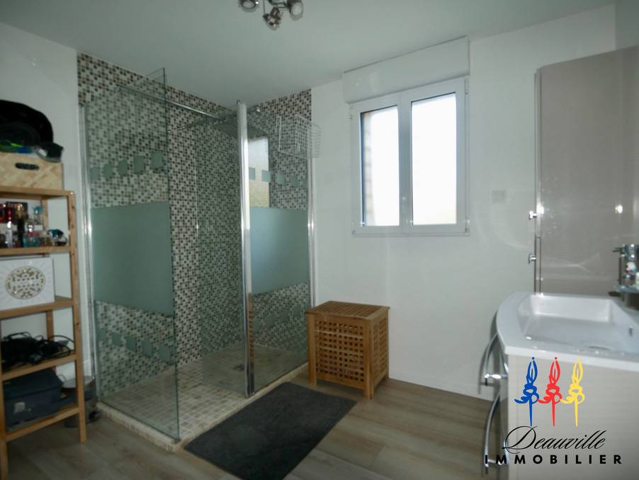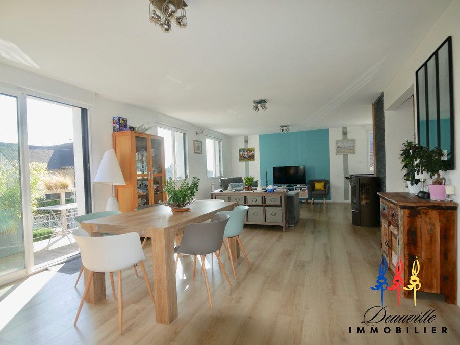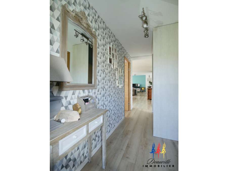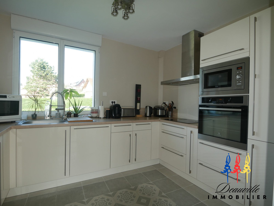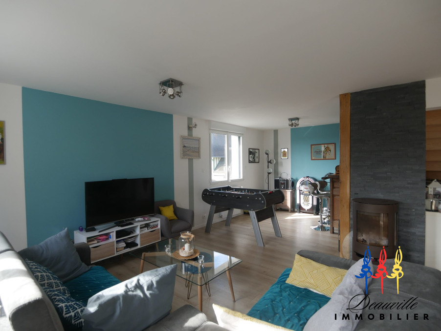 Agréable maison joliment décorée et agencée avec modernité, offrant un très bel espace de vie, à quelques minutes à pieds du centre de Blonville sur Mer et de la plage! Entrée avec vestiaire, vaste Séjour Salon avec poêle à bois, et baie vitrée sur terrasse ensoleillée de 17M2, Cuisine aménagée et équipée, Une chambre et salle de douche, WC avec lave-mains. A l'étage: palier, quatre chambres dont une avec pièce dressing attenante, salle de bains avec WC. Sous sol : Chaudière à granulés- ballon thermodynamique.pour production eau chaude. Mode de chauffage économique! Terrain d'environ 1000M2. Cinq chambres au total, Maison claire et spacieuse, à 800 mètres de la Mer!