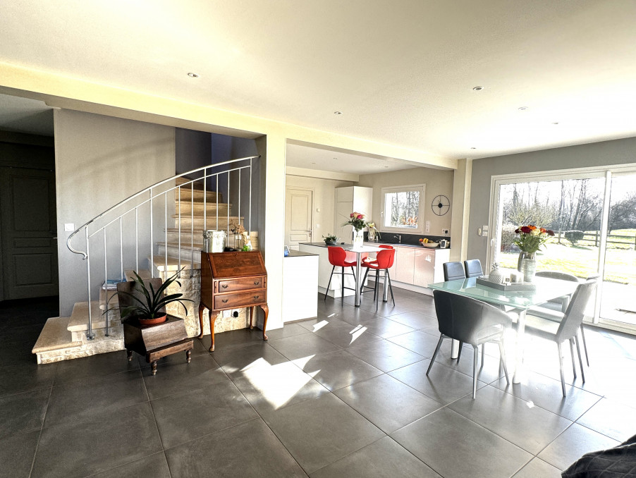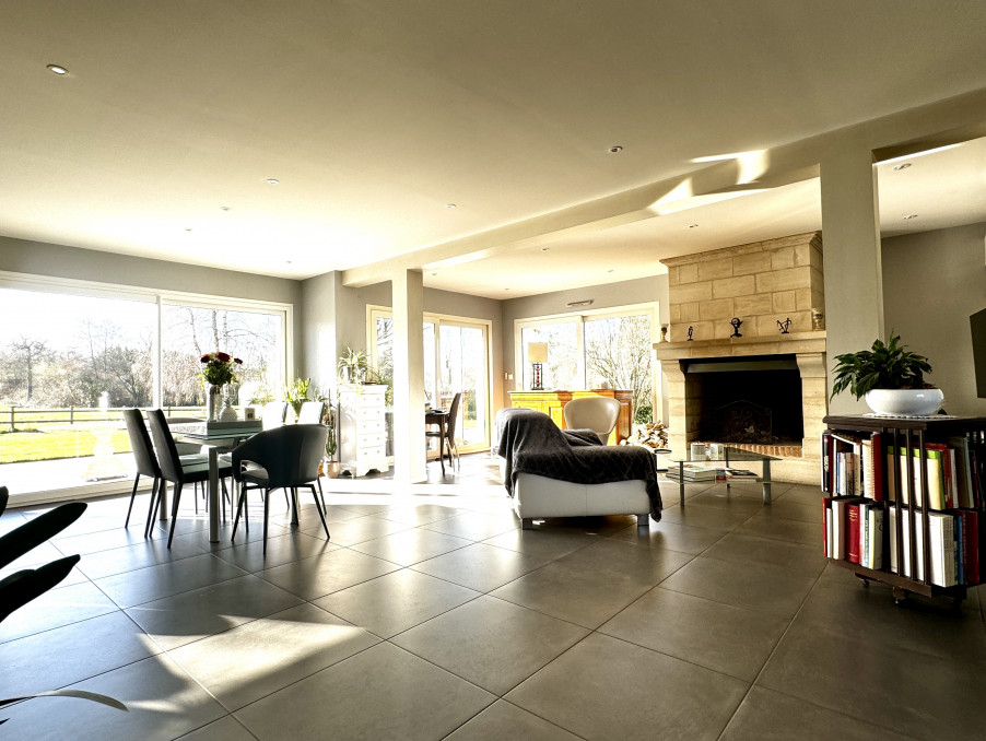 Édifiée sur un terrain de 3 hectares! Entrez.. et découvrez un Séjour Salon lumineux aux volumes généreux. 70M2 de réception avec cheminée en pierre, meuble bibliothèque, Cuisine récente aménagée et équipée avec îlot central. Trois baies vitrées s'ouvrent sur une vaste terrasse exposée Sud Ouest, avec une magnifique vue sur la campagne. Arrière cuisine, nombreux placards et rangements. Au total, vous pourrez bénéficier de quatre chambres, chacune avec sanitaires privatifs. . Deux WC invités. Très bel escalier en pierres de bourgogne. Au sous sol, une vraie cave à vins, un double garage avec porte automatisée, atelier/buanderie.