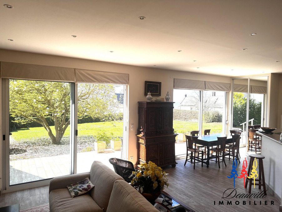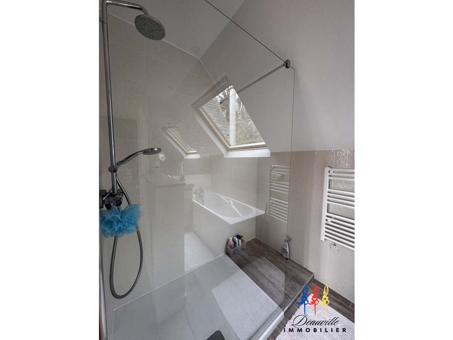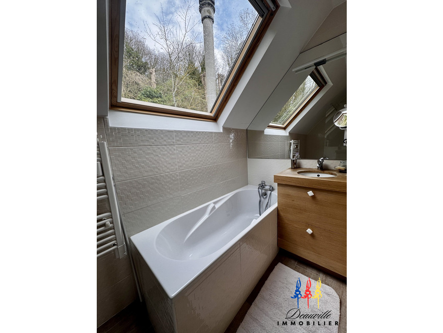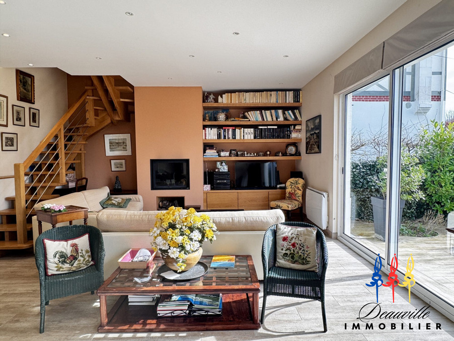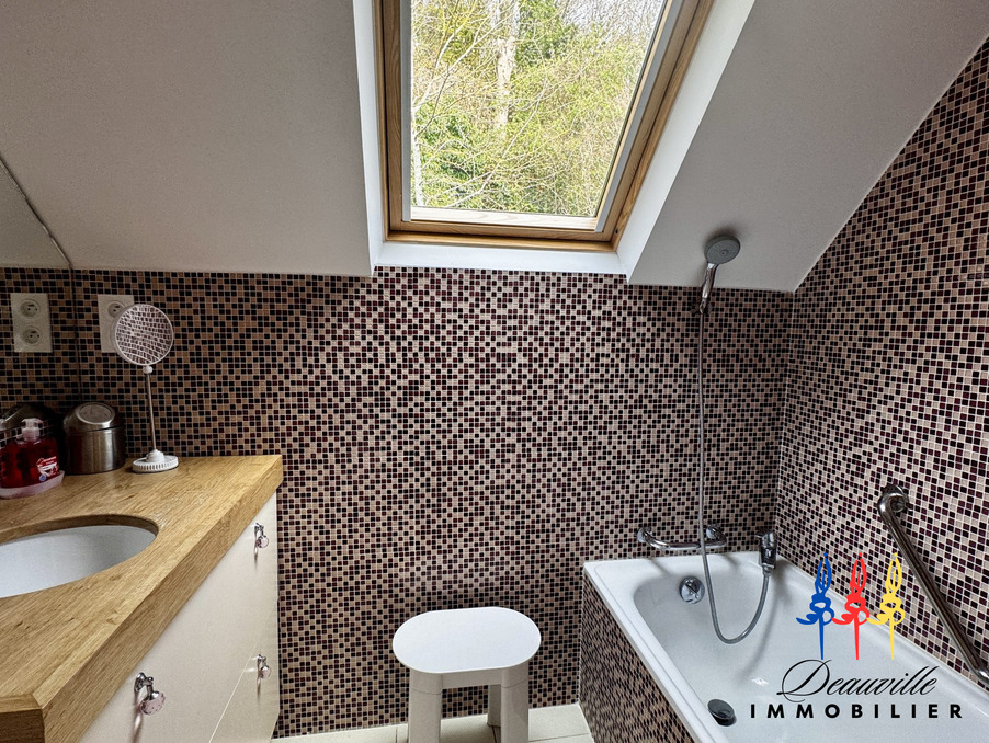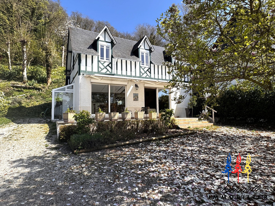 Hauteurs de Trouville-sur-Mer – Vue mer – Environnement verdoyant Ravissante maison implantée dans un cadre naturel privilégié, au cœur d’un terrain arboré de 1 894 m², offrant calme, intimité et une agréable terrasse ensoleillée. La maison propose une belle pièce de vie avec cheminée, une cuisine aménagée, et à l’étage trois chambres, deux salles de bains et de nombreux rangements. Annexes : cave, abri de jardin et garage avec porte automatisée. Située à moins de 3 km de la plage et du centre de Trouville, cette maison, vendue meublée, allie charme, nature et confort. Le bien est situé dans un secteur encadré par un Plan de Prévention des Risques (mouvements de terrain) applicable aux constructions existantes. Des travaux de mise en conformité de l’assainissement sont à prévoir (étude de sol et devis disponibles). Le prix de 499 000 € tient compte de l’ensemble de ces éléments, offrant une réelle opportunité dans ce secteur recherché.