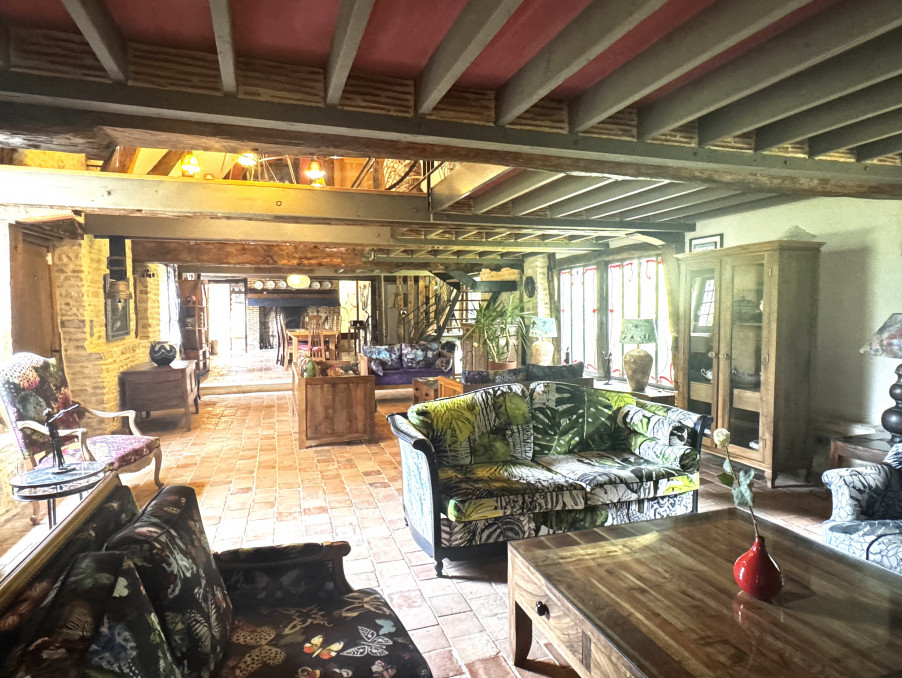 Nichée dans un environnement paisible, authentique ferme à colombages et sa bergerie, sur un terrain arboré et fleuri de 12450 M2.